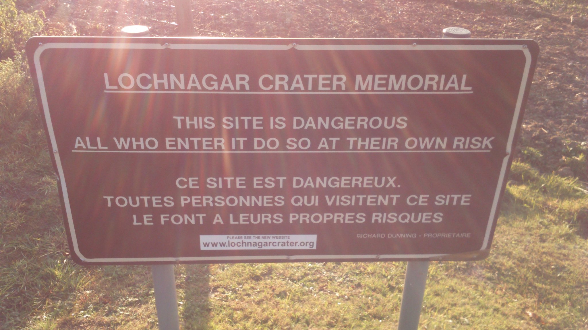 Panneau d’avertissement, Lochnagar Crater – octobre 2016