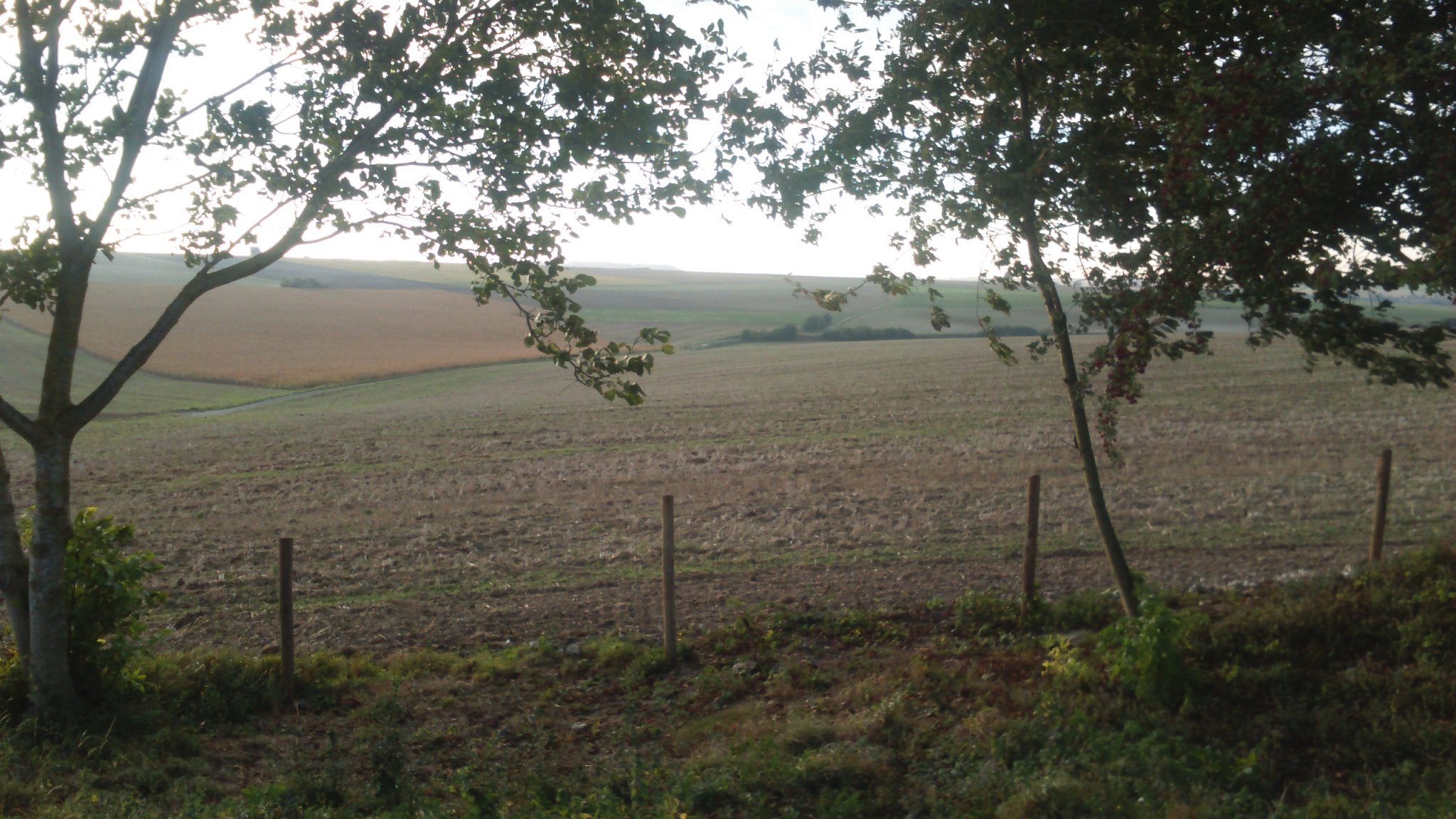 Et puis une voiture passe en hâte sur la petite route, et je sors de l’étrange lucidité rêveuse dans laquelle le silence matutinal m’avait plongé… j’entends à nouveau les oiseaux. Les détonations lointaines ne sont que les coups de fusils de chasseurs en maraude dans les bois des environs, et l’étouffant No Man’s Land redevient une mosaïque des champs rassurants où les verts, les bruns et les craies respirent dans une harmonie apaisée.